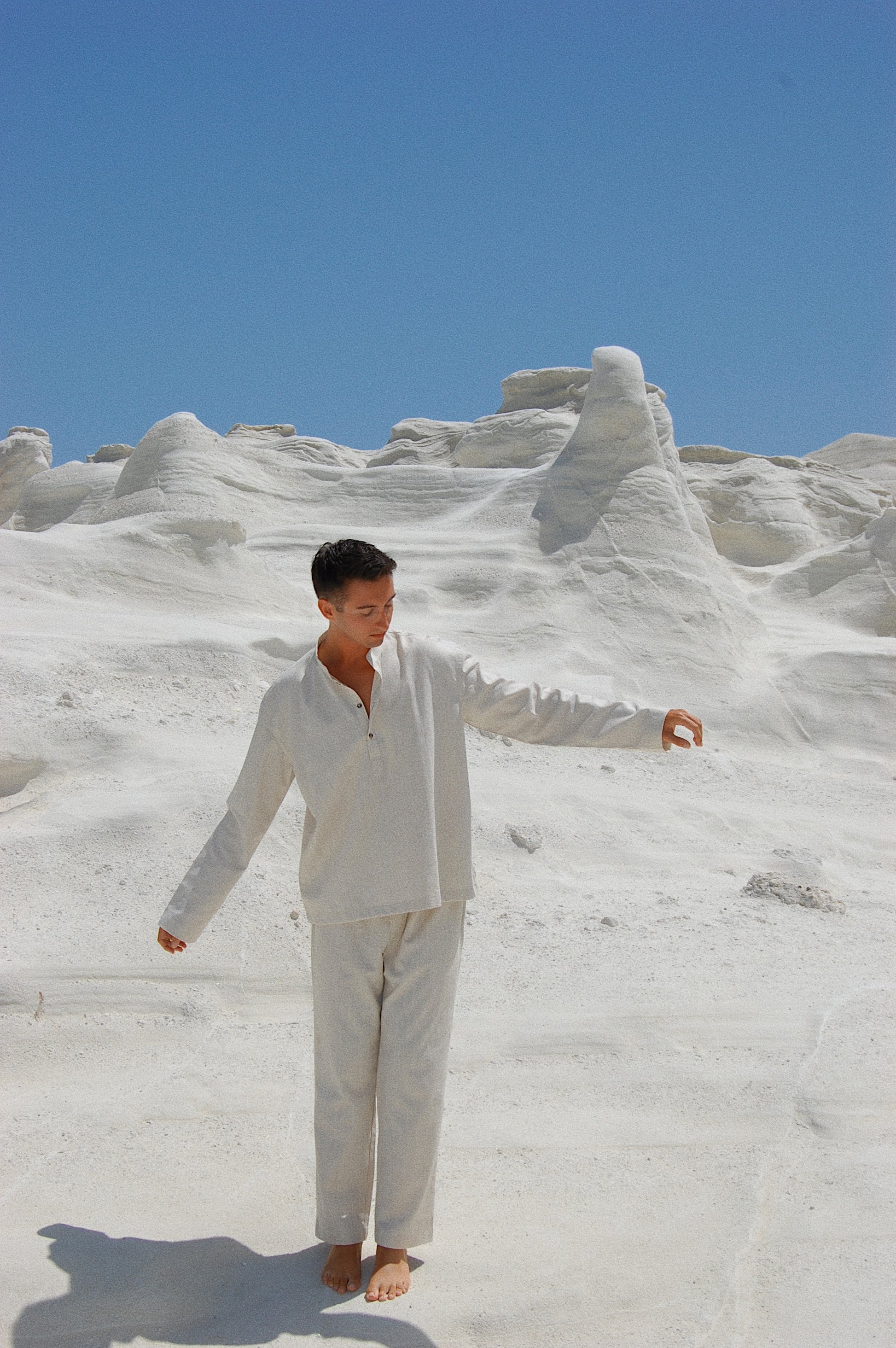 The AFTERSWIM pants are made for the return from salt to shade, from a sun-soaked swim to the next thing on the horizon. Cut from a lightweight linen-cotton blend that moves easily, they slip on without fuss and follow the pace of your steps. The design is simple but sure, made to feel good in the in-between, when the day is still unfolding.